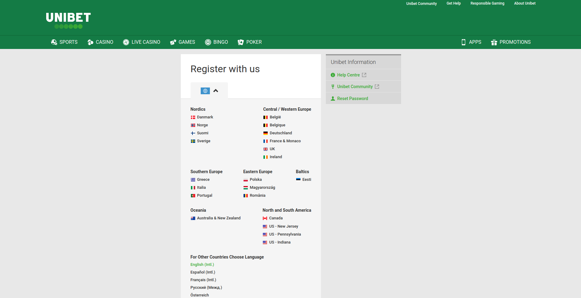 Pentru a vă înregistra la Unibet Casino puteți face clic pe butonul galben „Înscrieți-vă” de pe site-ul web, care vă va duce apoi la un mic formular online care vă solicită să completați următoarele informații:
